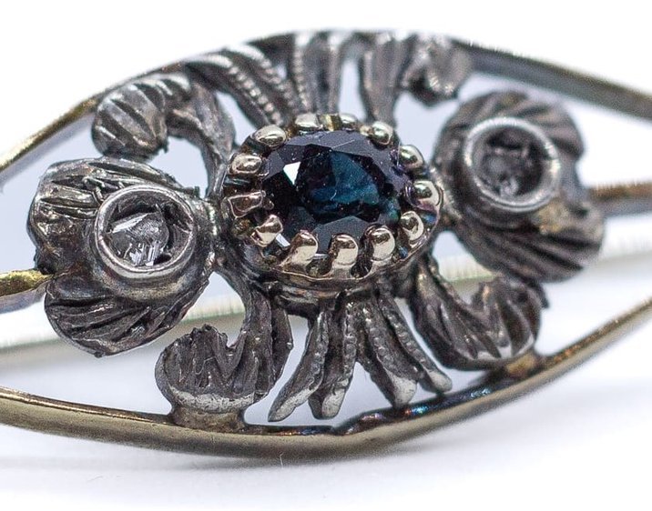 18kt gold and silver antique brooch with sapphire and diamonds a 750.00€