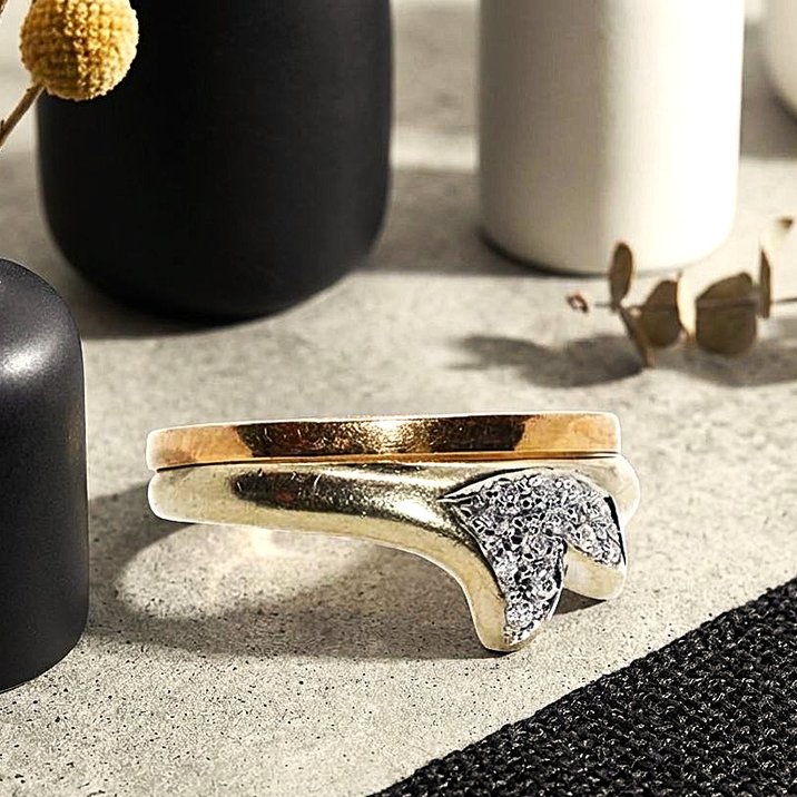 18kt yellow and white gold with twelve "single cut" diamonds. The ring size is 53/13. The weight 3.51 grams.