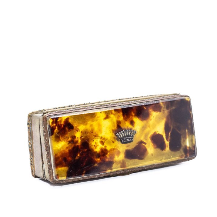 Antique tortoiseshellbox with earl crown. Size.7.5x3.0x1.07 cm.