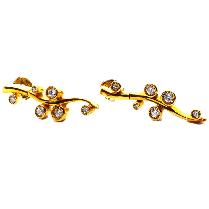18kt yellow gold earrings and pendant demiparure, round brilliant cut diamonds 1 carat circa in total, the weight of the gold is 12,05 grams.