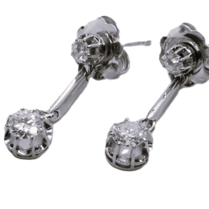18kt white gold earrings, 1,50 carats round brilliant cut diamonds, lenth mm. 25,00.