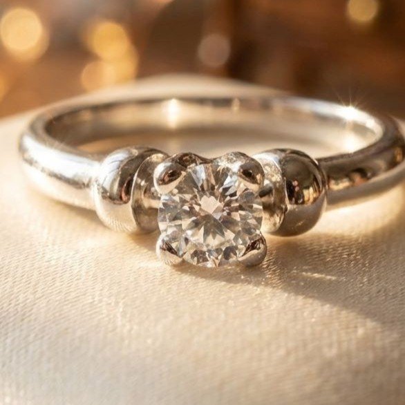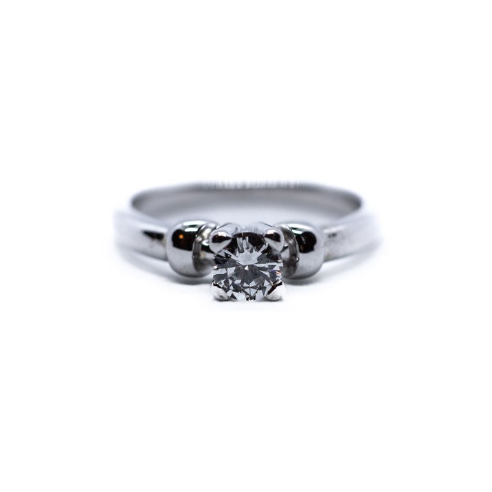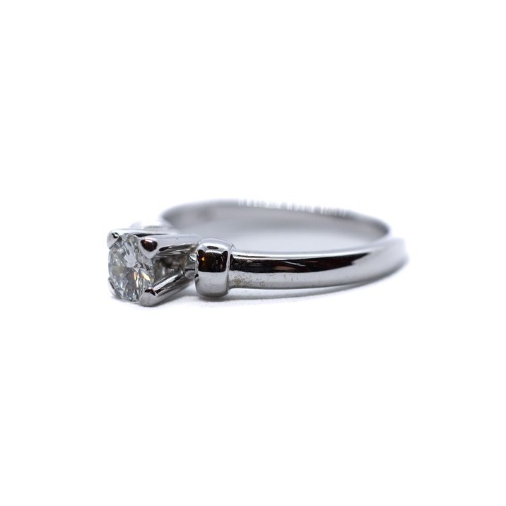 Around half carat high quality round brilliant cut diamond on 18kt white gold ring. Ring size 55/15. Weight 4.48 grams. Gemological Certificate to testify the top quality of the stone.