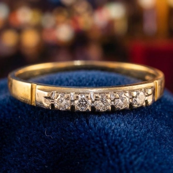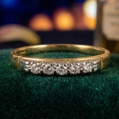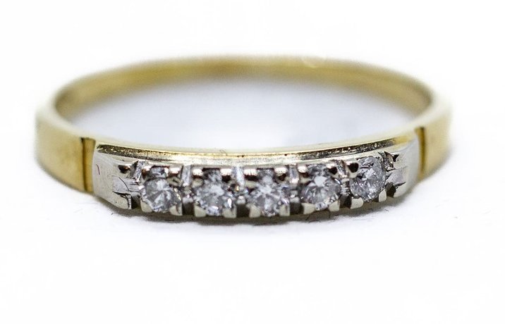 18kt bi-coloured gold river ring, five round brilliant cut diamonds. Ring size 57/17. Weight g. 2,40.