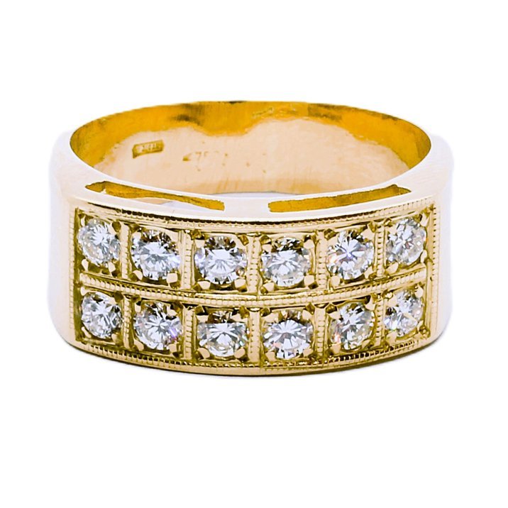 18kt yellow gold ring with 0,60 carats top quality round cut brilliants diamonds, weight 6,91 grams.