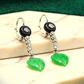 Gold, jade, onix and diamonds earrings
