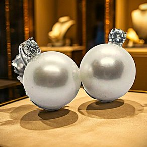 18kt white gold earrings, australian pearls and diamonds