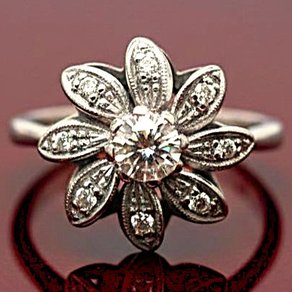 Anello "margherita" oro bianco, diamanti taglio brillante e zaffiro.