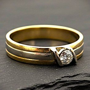 Anello da mignolo oro giallo e bianco e diamanti taglio brillante