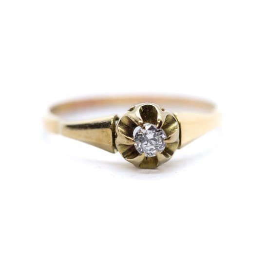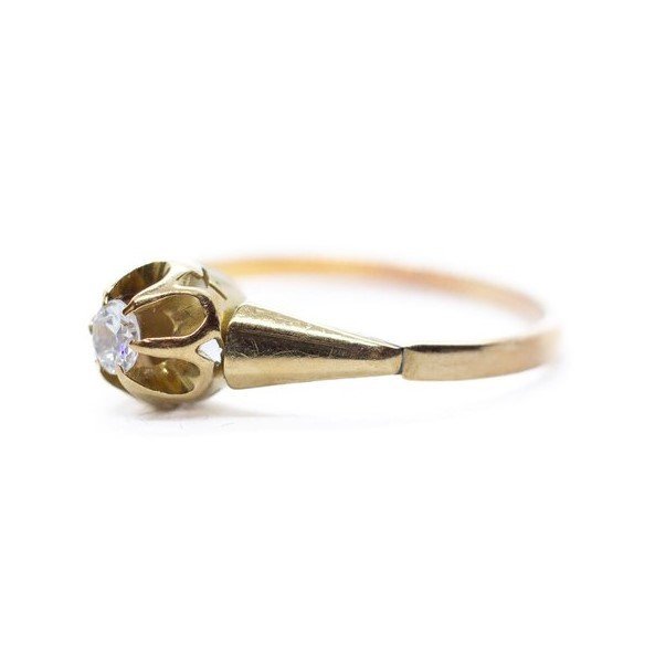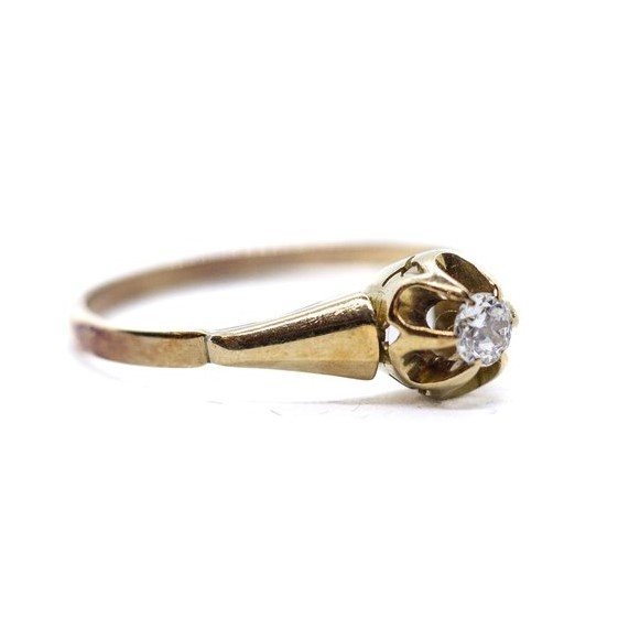 Anello antico in oro rosso 18kt con diamante tg. "old mine" di 0,10 carati circa. M.15/55. Peso gr.2,49. Primi 900.
