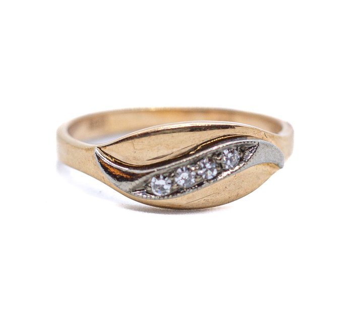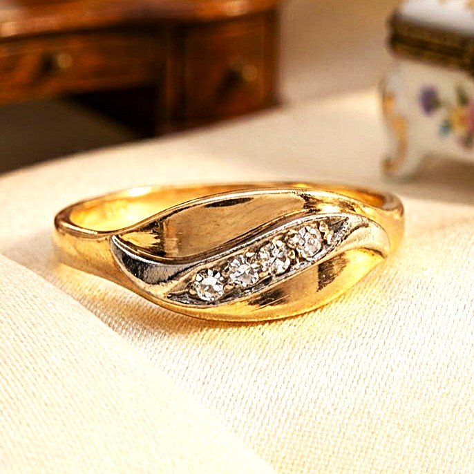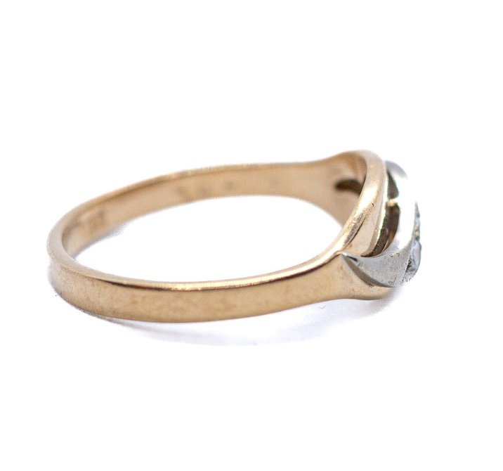 Anello antico in oro rosso, argento e diamanti taglio brillante a 830,00€