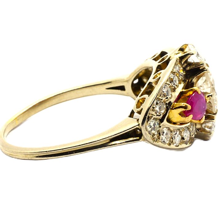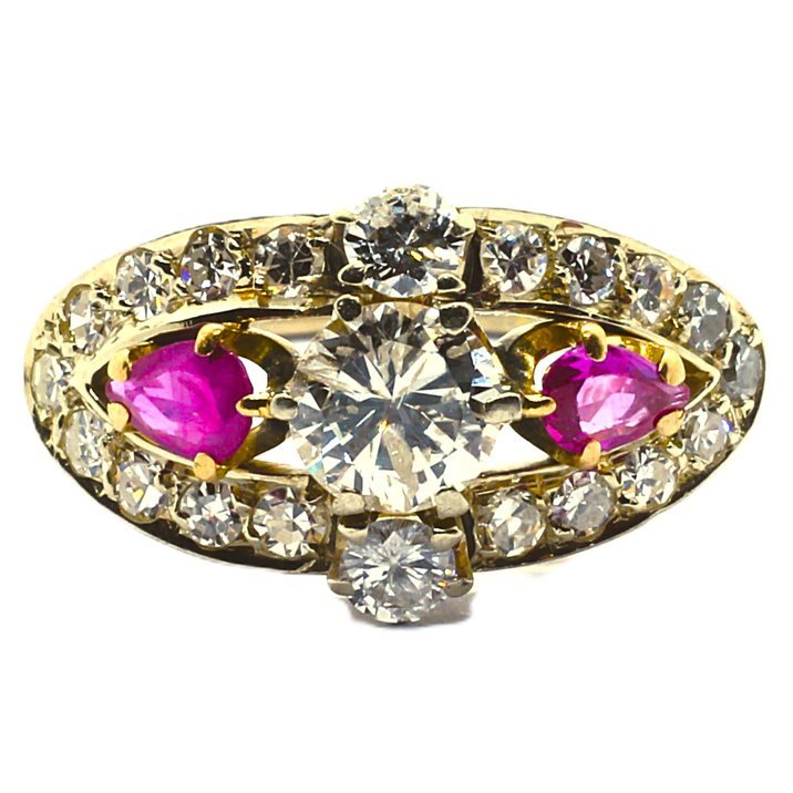 Anello antico oro bianco, diamanti e rubini a 2700,00€