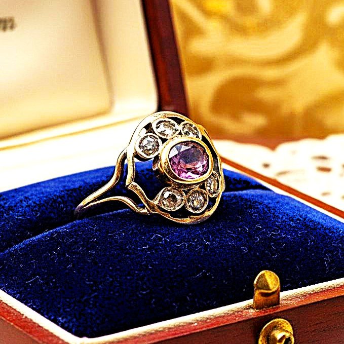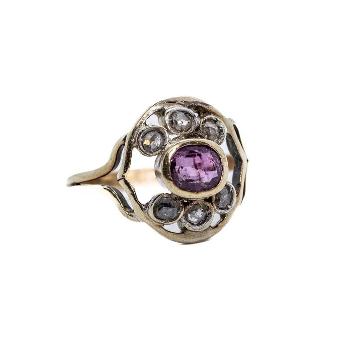 Anello antico. Oro, diamanti e rubino a 850,00€
