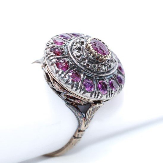 Anello antico oro,argento,rubini e diamanti. a 1350,00€