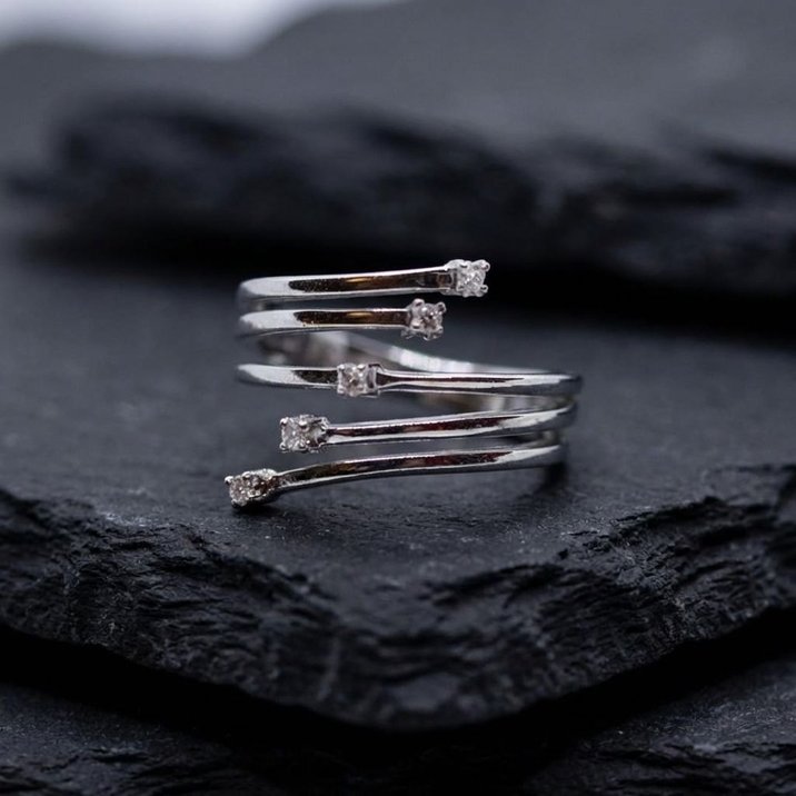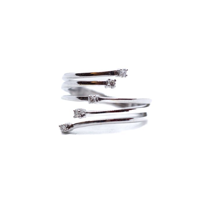 Anello "Comete" in oro bianco 18kt e cinque diamanti tg. brillante. Mis.16/56. Peso gr.4.85.