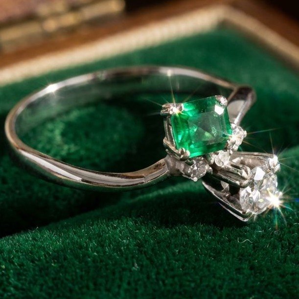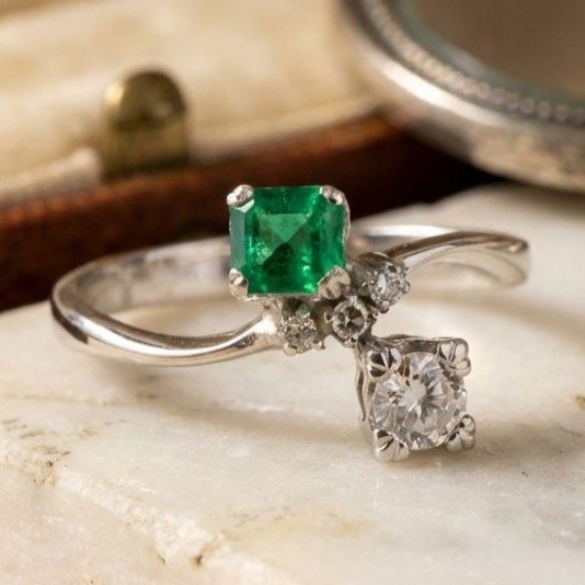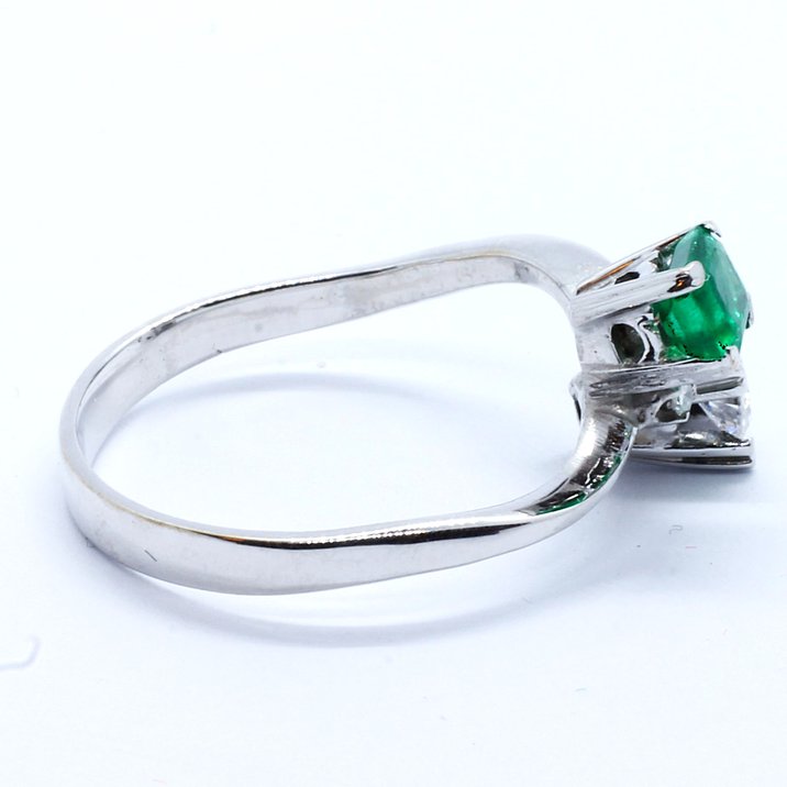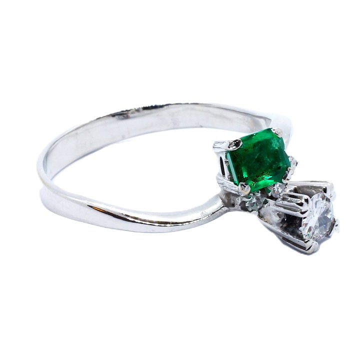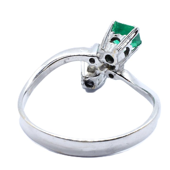 Anello "contrariè" in oro bianco, smeraldo e diamanti a 1800,00€