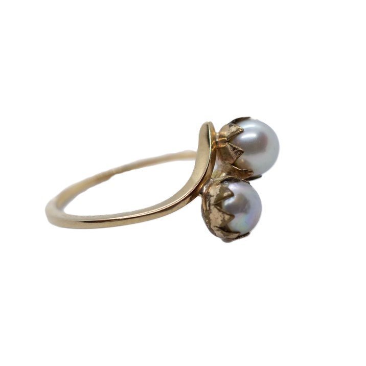 Anello "contrariè" perle in oro giallo 18kt. Le perle hanno un diametro medio di mm. 23,0. Misura 20/60. Peso gr. 3,74.