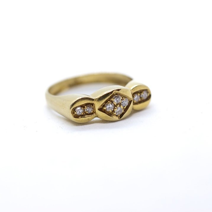 Anello in oro giallo 18kt e otto diamanti tg. single cut. Misura 10/50. Peso 2,74 grammi.