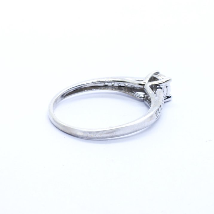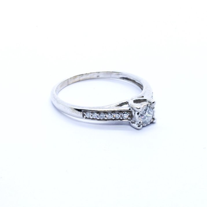 Anello in oro bianco 18kt e diamanti taglio brillante per 0,25 carati. La caratura dei diamanti è scritta all'interno del gambo dell'anello. La misura (sempre modificabile) è 13/53, il peso è 1,90 grammi.