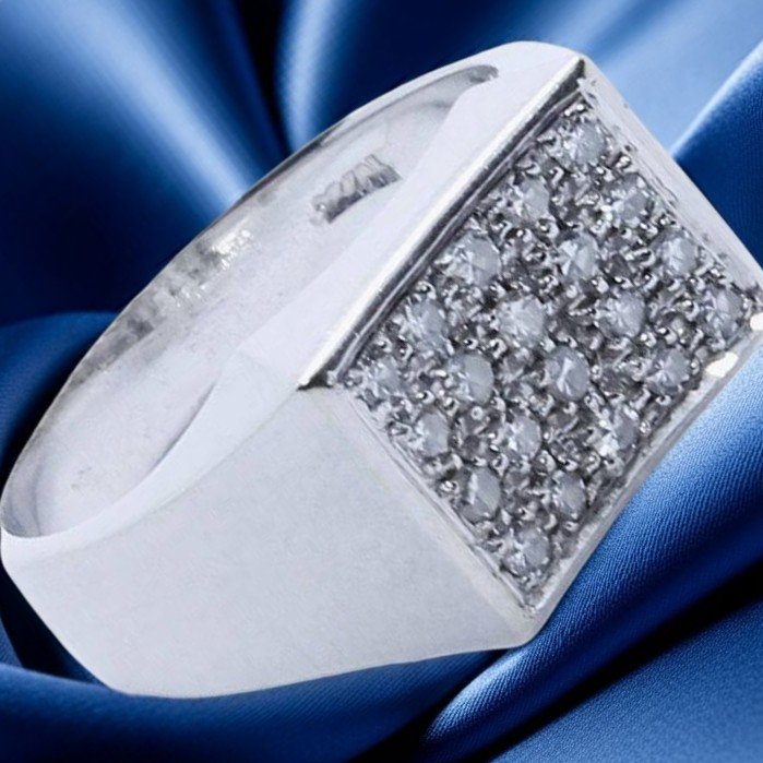 Anello in oro bianco 18kt con 20 (venti) diamanti di ottima qualità "single cut". Peso gr. 6,56.