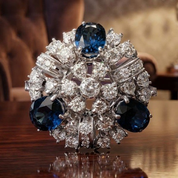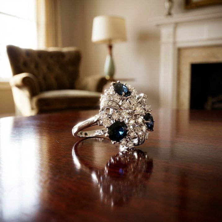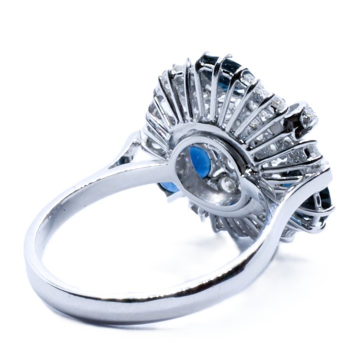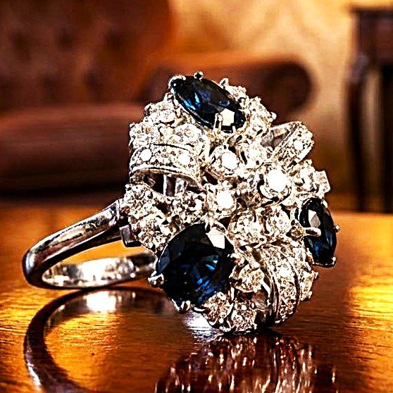 Anello oro bianco, diamanti taglio brillante e zaffiri a 1500,00€