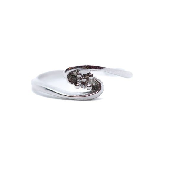 Anello in oro bianco 18kt con un diamante taglio brillante (0.05 ct ca.) di ottima qualità. Misura 51/11. Peso gr. 2.71