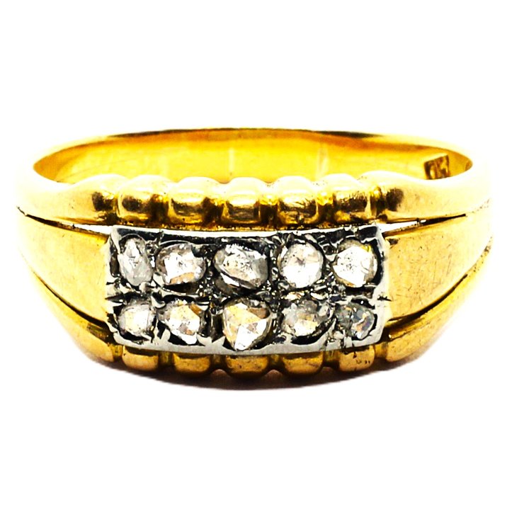 Anello in oro giallo 18kt e 10 diamanti taglio a rosa. Peso gr.6,02.