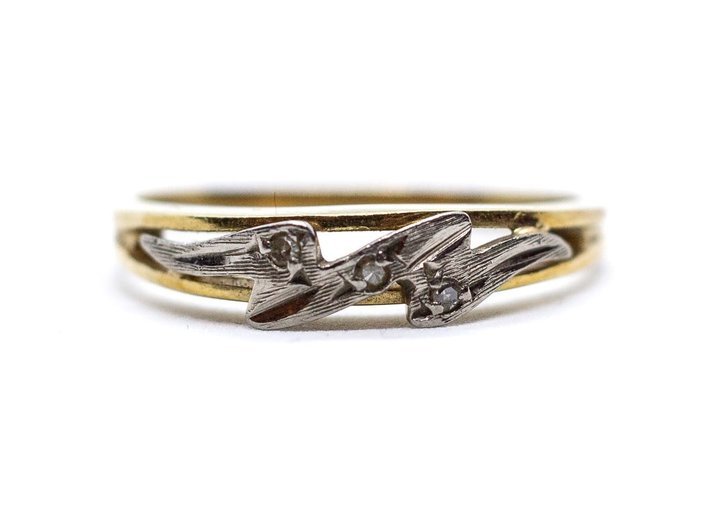 Anello in oro giallo e bianco 18kt con diamanti taglio "single cut". Mis.14/54. Peso gr. 2.39.