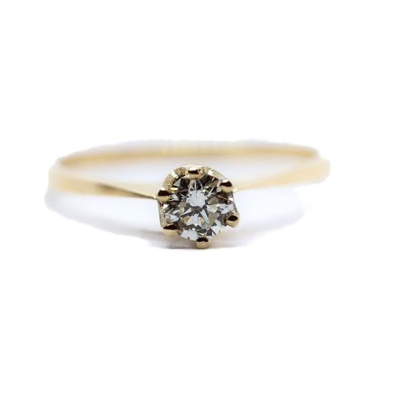 Anello in oro giallo 18kt e diamante di 0,40 ct circa (ottima qualità) tg. brillante. Misura 22/62. Peso totale gr. 2.23.