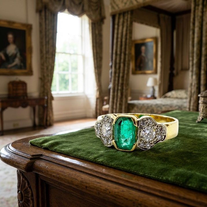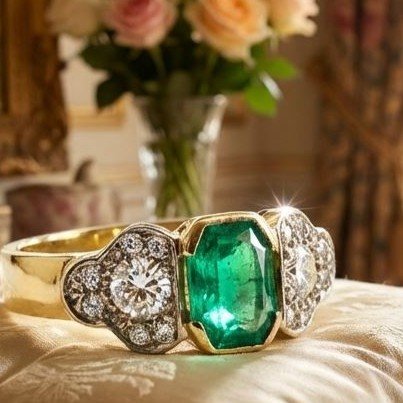 Anello oro giallo, smeraldo e diamanti taglio brillante a 3800,00€