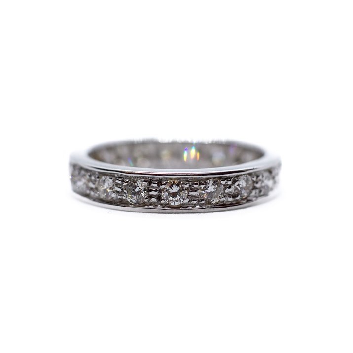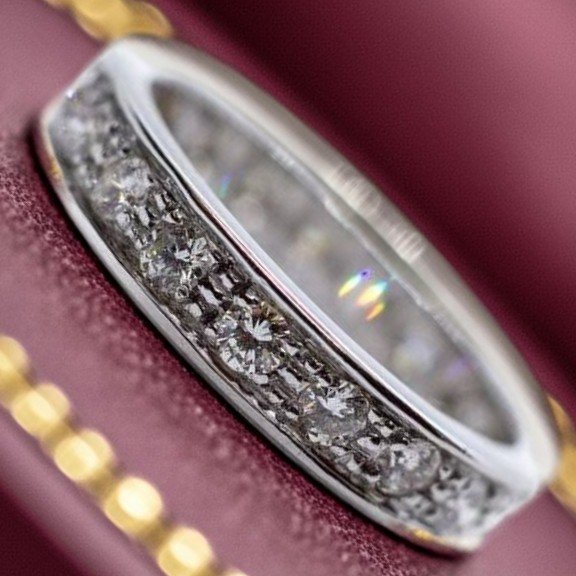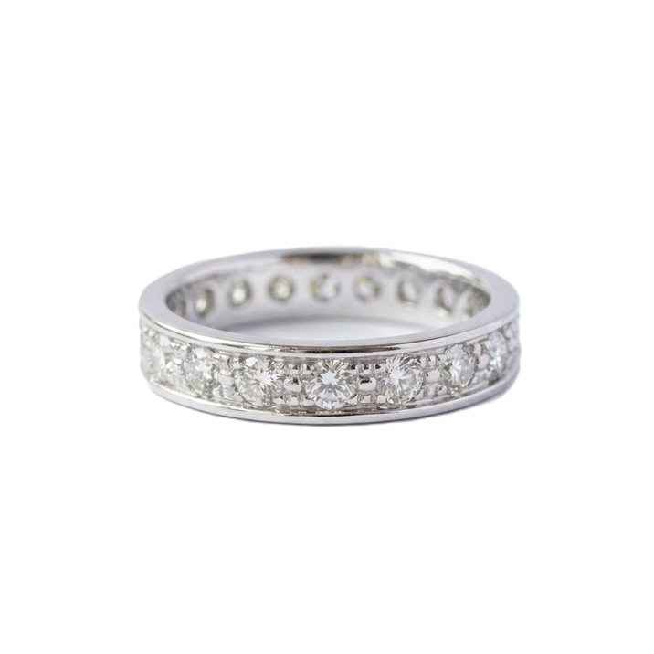 "Eternelle" in oro bianco 18kt con diciannove diamanti tg. brillante di ottima qualità. Mis. 15/55. Gr. 4,56.