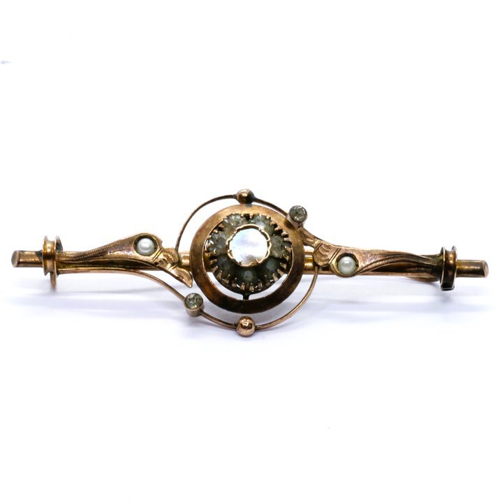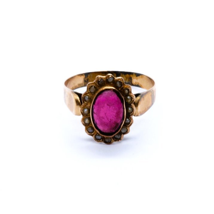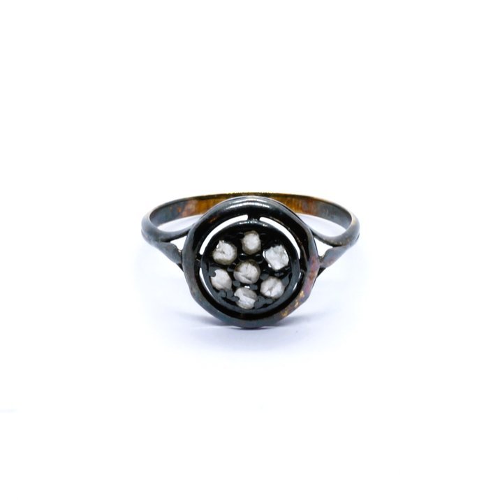 Lotto di gioielli antichi composto di quattro anelli ed una spilla. Il periodo di realizzazione va dal 1880 ca. ai primissimi del 900. Oro a basso titolo, argento e pietre varie. Diamanti, granati, microperle, madreperla etc. Per ragioni ereditarie, per quanto concerne la vendita, il lotto non può essere frazionato. Misure e peso. Spilla gr.4,40, lungh.cm. 6,30. Anelli gr.1,60,2,10,2,80,2,90. Mis. 21/61,17/57,16/56,13/53.