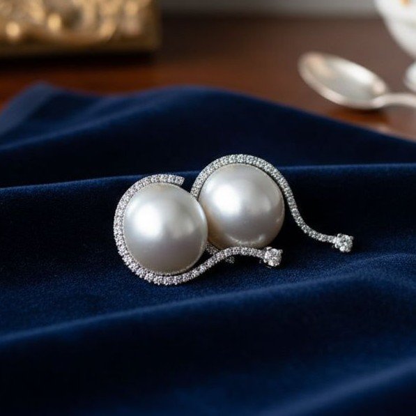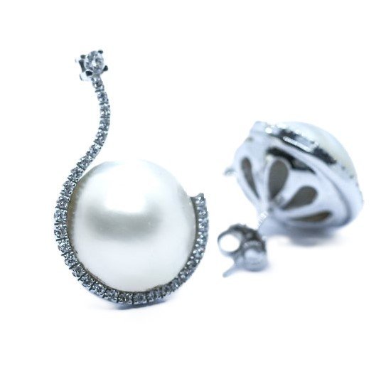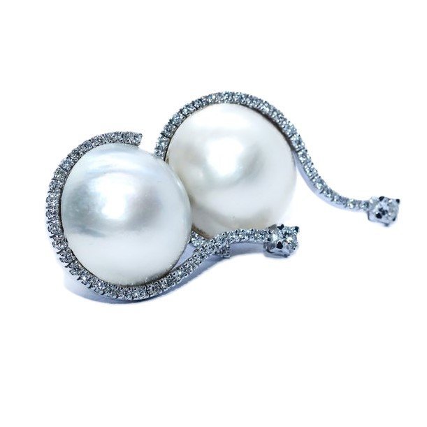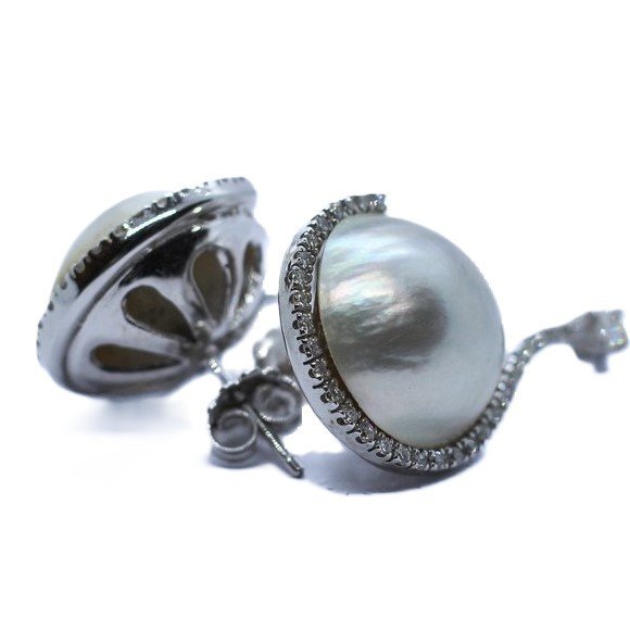 Orecchini oro bianco, perle Mabe e diamanti taglio brillante a 1800,00€