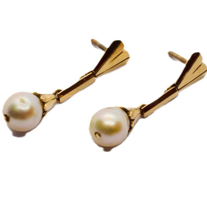 Orecchini in oro giallo 18kt e perle akoya 7,00 mm. Peso gr. 5,24.