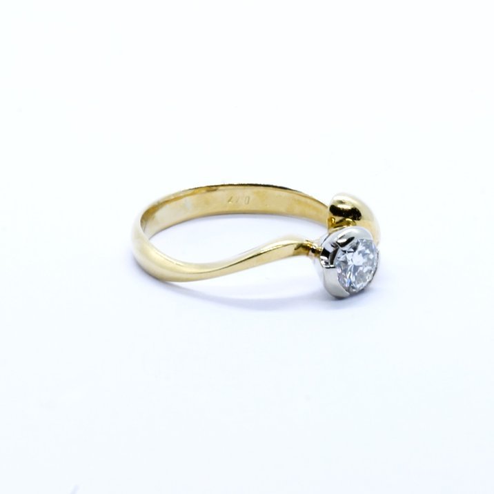 Anello solitario di 0,50 carati montato su oro giallo 18kt. Diamante taglio round brilliant di eccezionale qualità. La misura (sempre modificabile) è 13/53. Peso dell'anello gr.3,21. Corredato di Certificato Gemmologico.