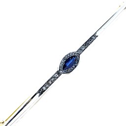 Spilla anni '40 in oro giallo 18kt, smalti, argento e ventisei diamanti taglio "old mine" per una caratura totale di 6,24 carati ca. e inoltre diciannove diamanti tg. rosetta per un totale di 0,60 ct. ca. Lung. cm.4,80. Larg. cm 2,50.