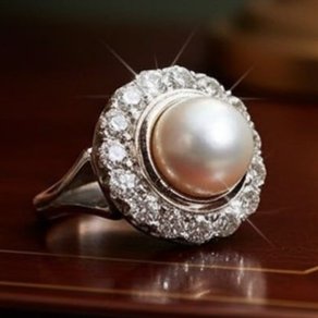 Anello in oro bianco, diamanti taglio brillante e perla australiana