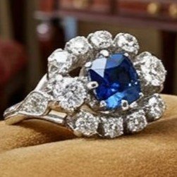 Anello oro bianco, diamanti taglio brillante e zaffiri