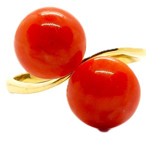 Anello oro giallo e corallo rosso