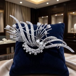 Spilla in oro bianco 18kt, zaffiri e diamanti taglio brillante