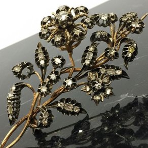 Spilla anni 50 in oro giallo 18kt e diamanti taglio brillante