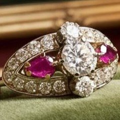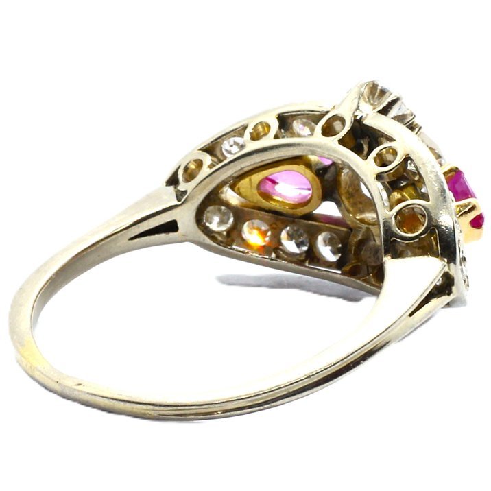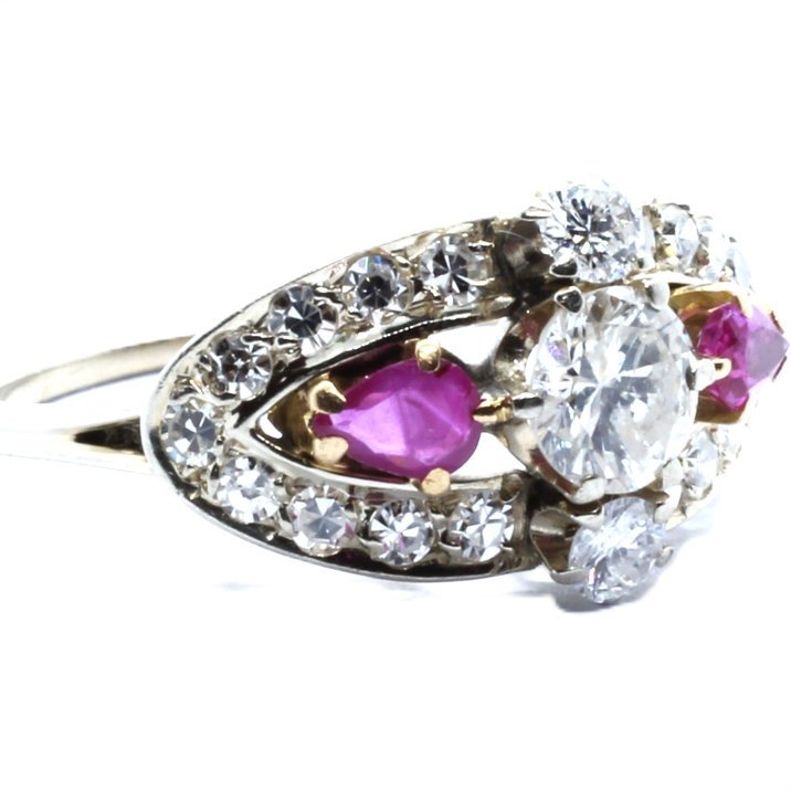 Anello antico oro bianco, diamanti e rubini a 2700,00€