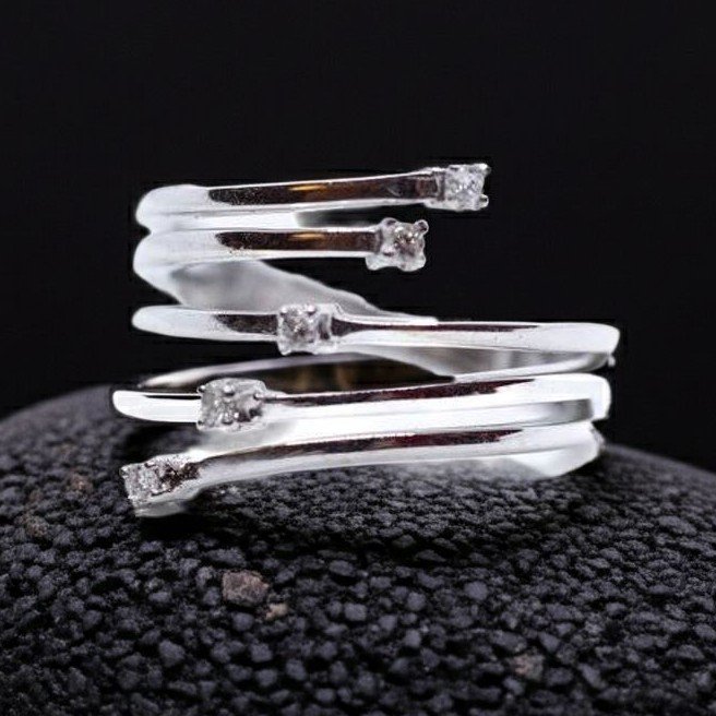 Anello "Comete" in oro bianco 18kt e cinque diamanti tg. brillante. Mis.16/56. Peso gr.4.85.