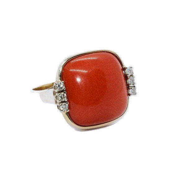 Anello in oro 18kt, corallo e diamanti taglio brillante a 1650,00€