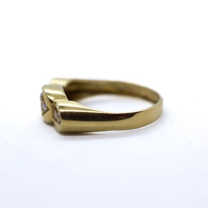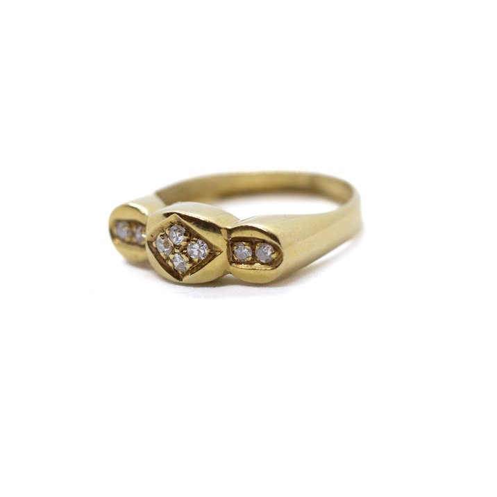 Anello in oro giallo 18kt e otto diamanti tg. single cut. Misura 10/50. Peso 2,74 grammi.