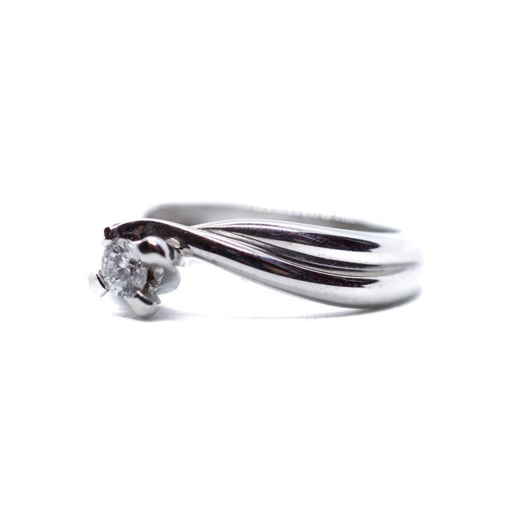 Anello in oro bianco 18kt con diamante taglio brillante di 0.20 carati ca. La misura, sempre modificabile, é 12/52 e il peso è di 4.80 grammi.