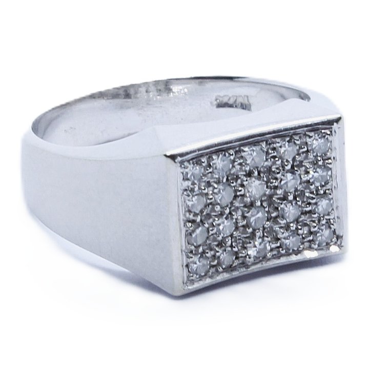 Anello in oro bianco 18kt con 20 (venti) diamanti di ottima qualità "single cut". Peso gr. 6,56.