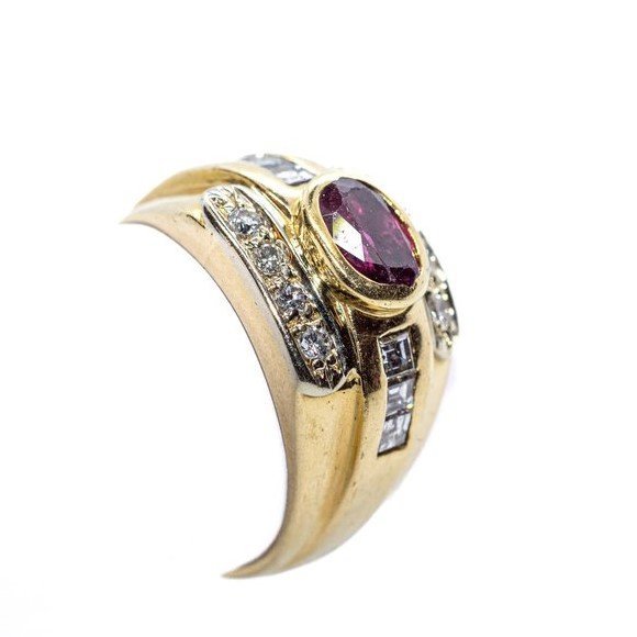 Anello in oro giallo 18kt, diamanti taglio brillante e rubino. a 2200,00€