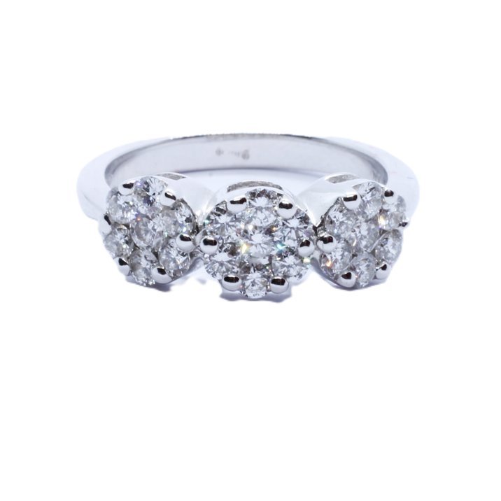 Anello in oro bianco 18kt con 21 diamanti taglio brillante di ottima qualità per una caratura complessiva di 0,80 carati ca. La misura al dito (sempre modificabile) è 14/54, il peso gr. 4,18.