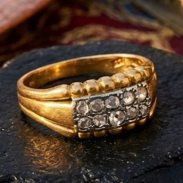 Anello in oro giallo 18kt e 10 diamanti taglio a rosa. Peso gr.6,02.