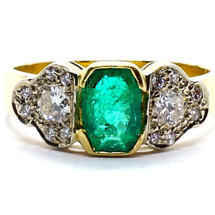 Anello oro giallo, smeraldo e diamanti taglio brillante a 3800,00€